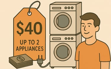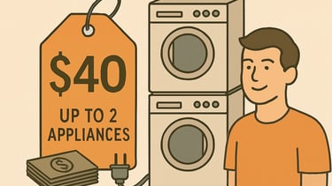 At Rocksteady Appliances, we specialize in washer and dryer removal only, using a refurbish-first, Donate Second model reduces waste and keeps removal affordable.